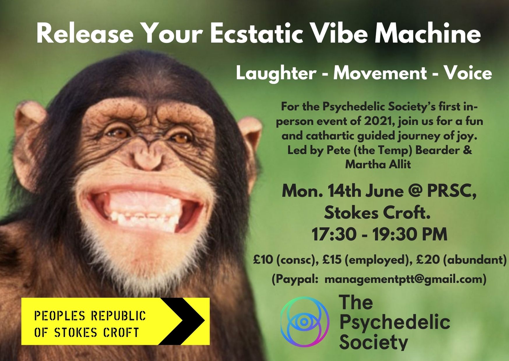 The Psychedelic Society’s first in-person event of 2021 will be a fun and cathartic journey through of the body and voice. We invite you to come into a space of connection with one another and with deeper elements of the self, finding expression built on the framework of traditional practices.