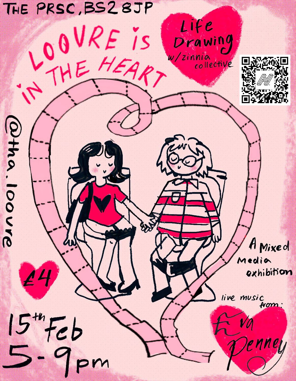 A Valentines adjacent Exhibition and Life Drawing event in collaboration with Zinnia Collective! Expect artwork from across all disciplines that celebrates and explores the topic of love! There will be a bar, prints sale, and a live performance by Eva Penney!